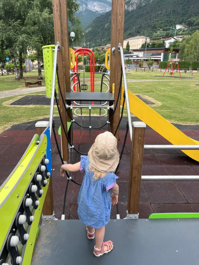 Wir beschließen direkt einen Tag zu verlängern, damit wir den Folgetag dem Baden widmen können. Jetzt geht es erstmal auf den Spielplatz, denn über Spielplätze freuen sich die Kinder immer. Vor allem, wenn sie wenig Bewegung hatten, weil sie in der Kraxe oder im Autositz sitzen müssen.