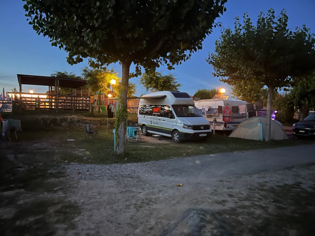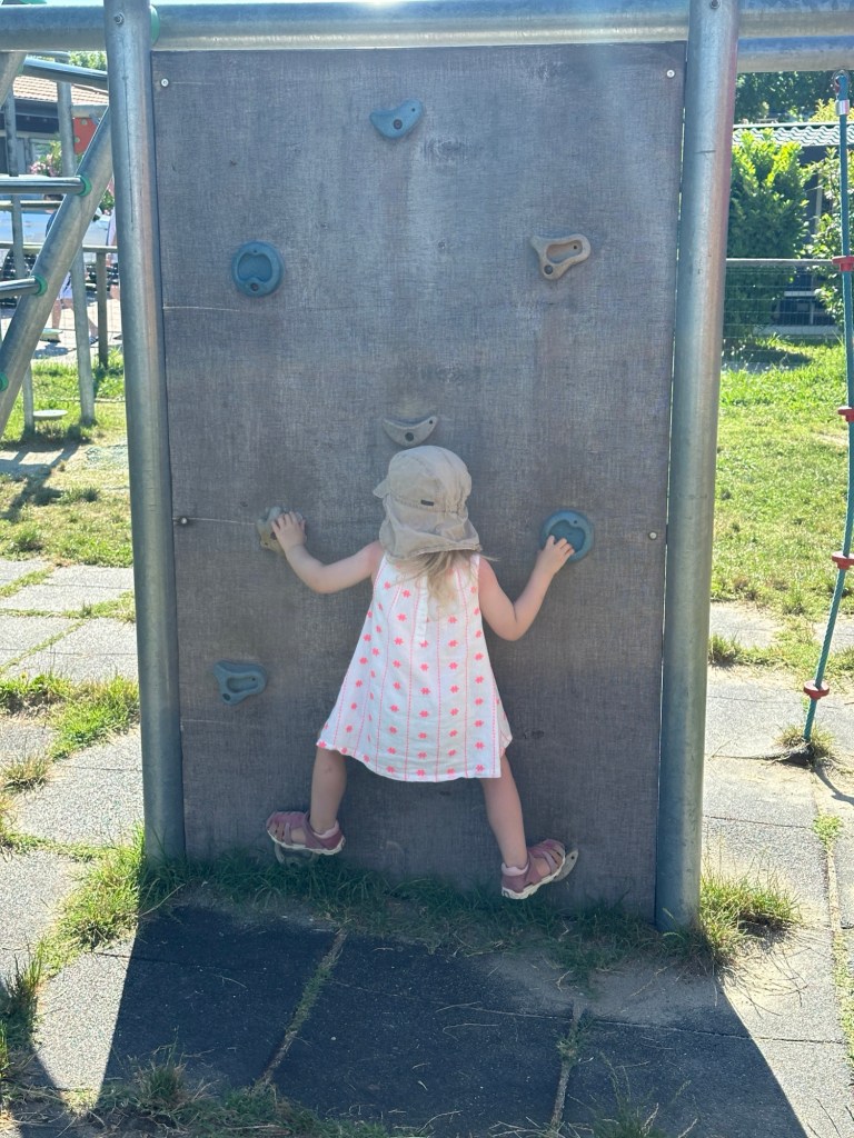 Direkt angrenzend an unseren Stellplatz ist der Spielplatz, auf dem auch sehr spät noch gespielt wird. Das ist Fluch und Segen zugleich. Die Große kann eigenständig dort hinlaufen und wir können uns gegenseitig sehen, wenn sie dort spielt. Nach zwei Tagen sagt sie, dass auf dem Spielplatz zu wenig sei, also zu wenig Spielmöglichkeiten, aber das ist OK. Für zwei Tage hat es gereicht.