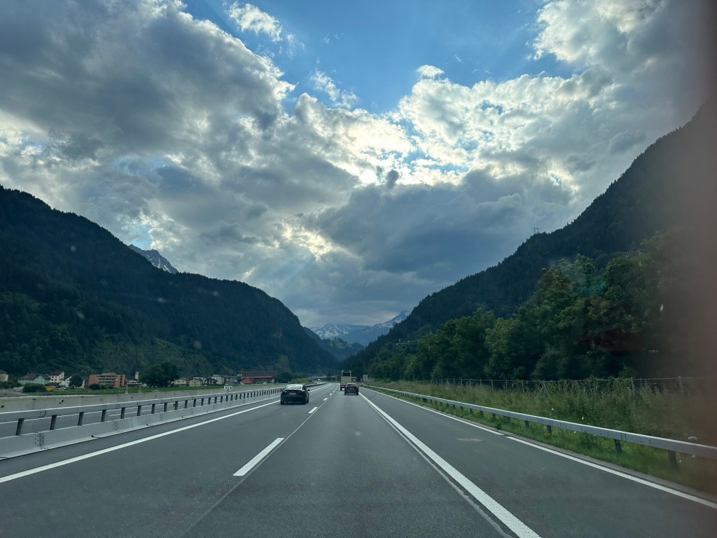 Wir entscheiden uns eine Abendfahrt zu machen, bei der die Kinder bettfertig gemacht werden und wir dann Fahrzeit haben, während sie ihren Nachtschlaf beginnen. Alles klappt soweit, die Kinder schlafen während der Fahrt ein und wir fahren entspannt ohne Druck durch Kinderbedürfnisse. Lu hatte schon in der Wetter App gecheckt, dass es Regen und Gewitter in Iseltwald geben wird. Nach den 30+ Grad in Italien, eine willkommene Abwechslung. Die nächsten Tage versprechen kühler zu werden.