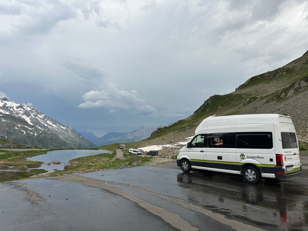 Auf dem Weg fängt es am Sustenpass das erste Mal an zu regnen. (Wir haben uns den Sustenpass gleich mal für künftige Wanderungen gemerkt, weil die Gegend darum sehr vielversprechend aussieht) Weiter im Tal angekommen wird es dämmerig und irgendwann dunkel, aber die Berge um den Brienzersee sind immer wieder kurz zu erahnen, wenn Blitze die Silhouetten kurz in der Ferne zeichnen. Der Regen wird stärker und als wir in der Nähe Brienz sind kommt richtig viel Wasser vom Himmel.