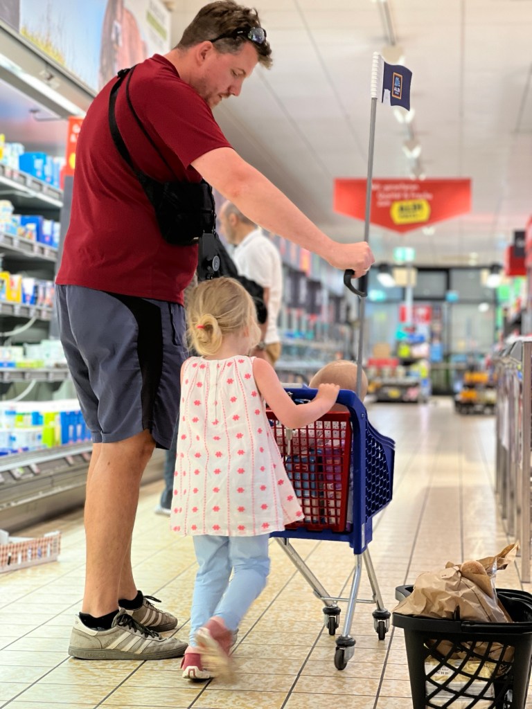 Wir wollen noch ein paar Kleinigkeiten einkaufen, aber es ist so unsagbar teuer in der Schweiz. Wir haben es leider verpasst in Italien noch einmal groß einzukaufen. Also kaufen wir jetzt nur das nötigste. Bananen, Erdbeeren und Eis. Eis ist auf jeden Fall nötig. Die Große hat im Eingangsbereich etwas entdeckt, was sie unbedingt haben möchte. Es ist EM und sie findet kleine Schweizer Fahnen. Ein Fünferpack. Sie findet sie toll und möchte sie haben. Sie kosten sechs Euro. Sechs Euro, die ich dafür nicht ausgeben möchte. Zum einen sind es gleich mehrere Flaggen und zum anderen haben wir sie schon überall im Camper rumfliegen sehen. Aber Bodo findet zum Glück einen Kompromiss. Sie darf sich etwas anderes aussuchen (mit mehr nutzen) für maximal sechs Euro und findet bunte gekochte Eier. Sie sind sogar günstiger und werden von allen gern gegessen. Perfekt! Die Große möchte gern ein Eis und auch wir hätten jetzt nichts gegen ein Eis. Auch Eis ist hier natürlich sehr teuer. Aber wir finden einen Becher mit Salzkaramell und Brezelstücken und gehen zur Kasse.