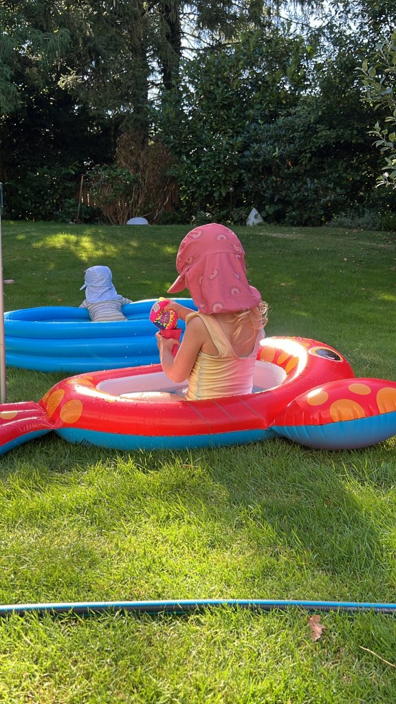 Es isr wieder bestes Badewetter und wir lassen Wasser ins Kinderplanschbecken. die Wäsche trocknet sehr schnell in der Sonne und irgendwie fühlt sich heute alles wie Urlaub an. Etwas Erholung von all dem Touren-Alltag.