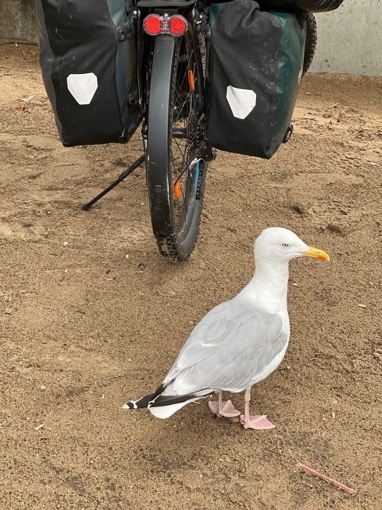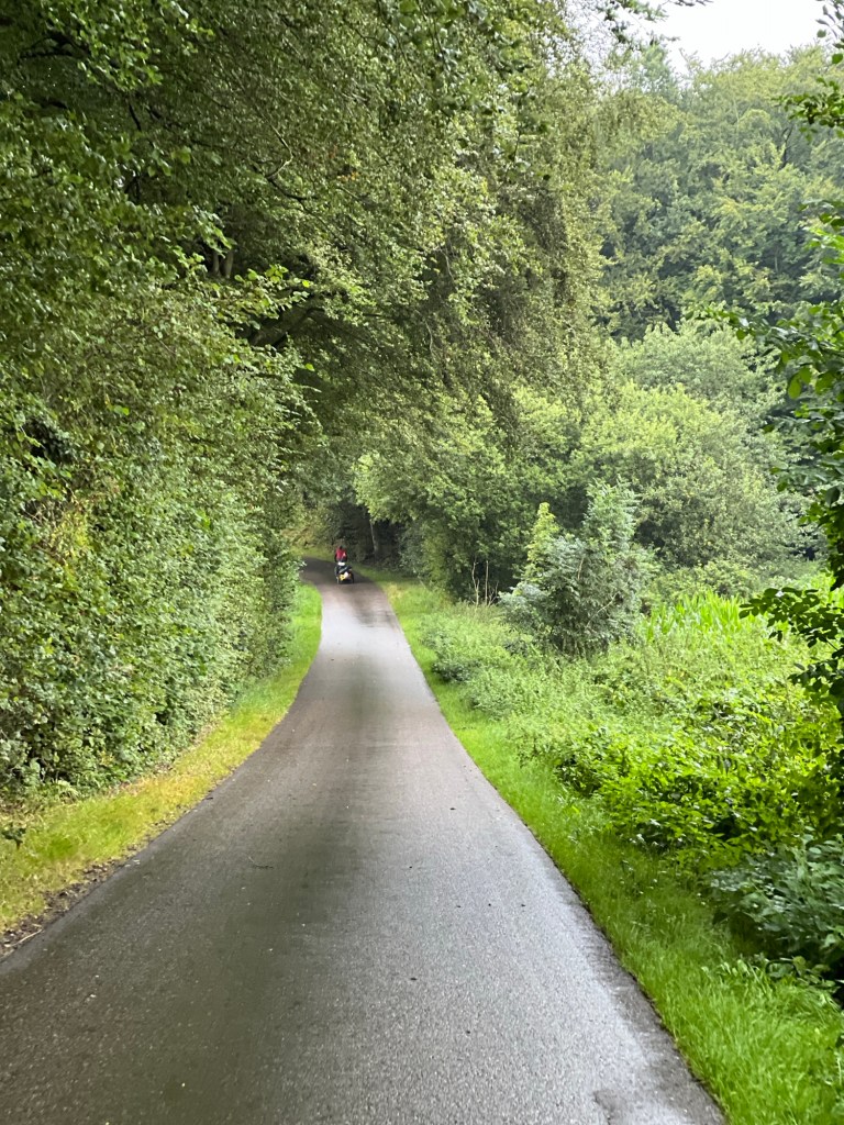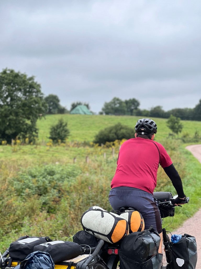 Es ist feucht draußen und regnet den ganzen Morgen. Als der Regen eine Pause macht, bauen wir das Zelt ab. Heute spanne ich mir den Anhänger vorerst für ein paar Tage ans Rad, damit Lu sich auskurieren kann. Die Erkältung schwelt immer noch, bricht aber nicht wirklich aus. Bei der sehr bergigen Etappe heute, die richtige Entscheidung.
