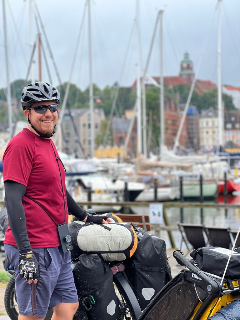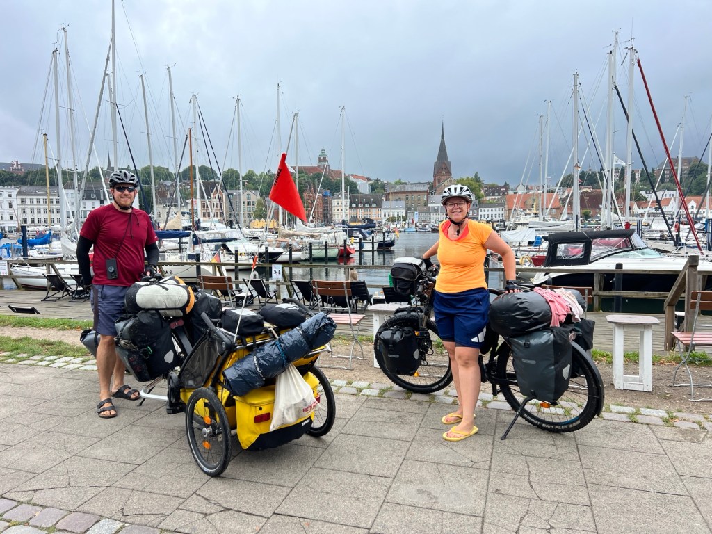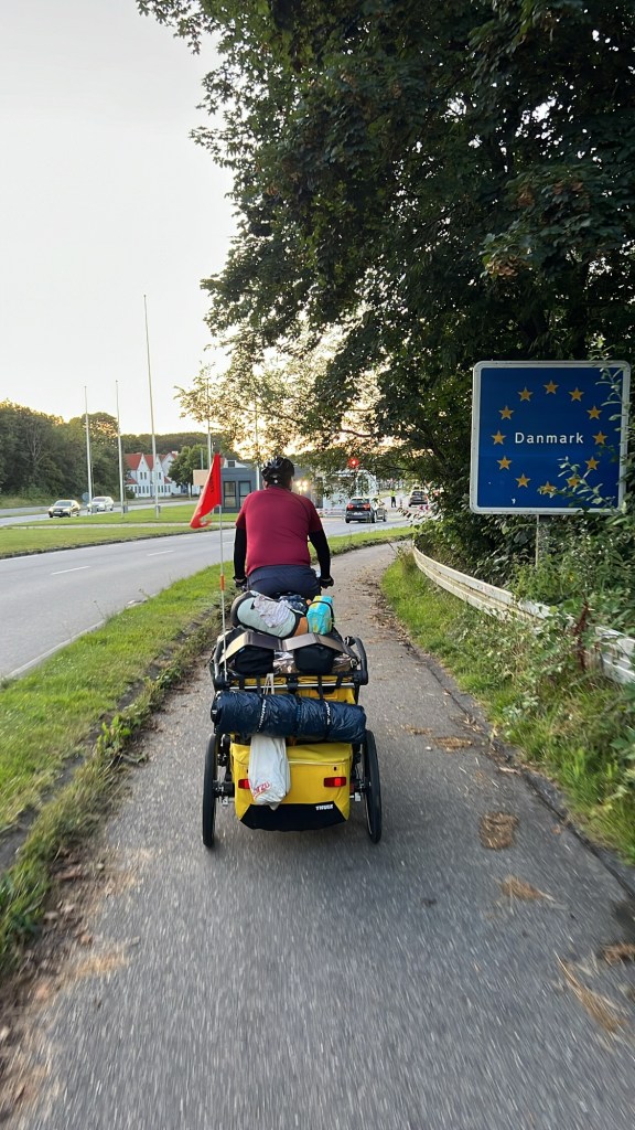 Es ist nicht mehr weit bis zur dänischen Grenze und eine halbe Stunde später sind wir in Dänemark angekommen. Nach etwa 550 km sind wir mit den Kindern im Gepäck von unserer Haustür bis nach Dänemark gefahren. Wow!