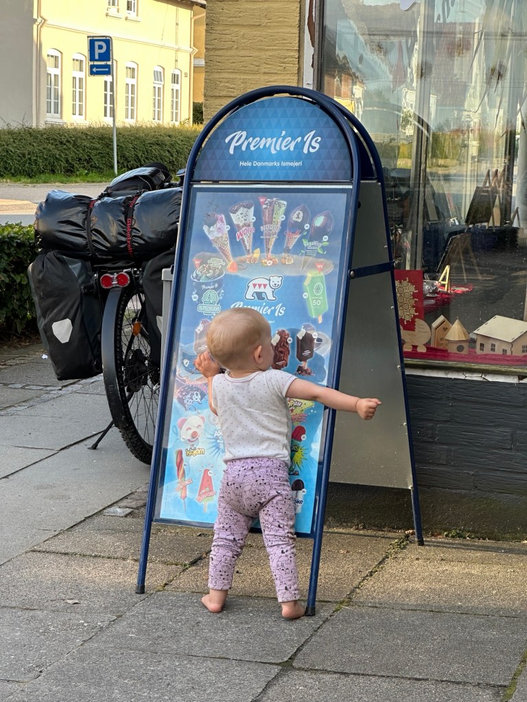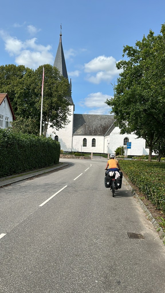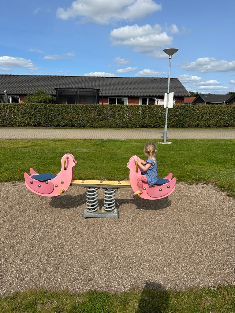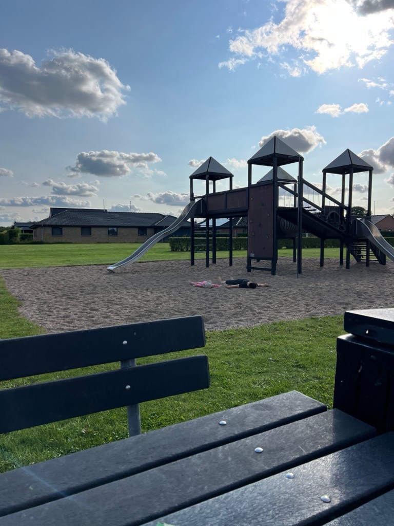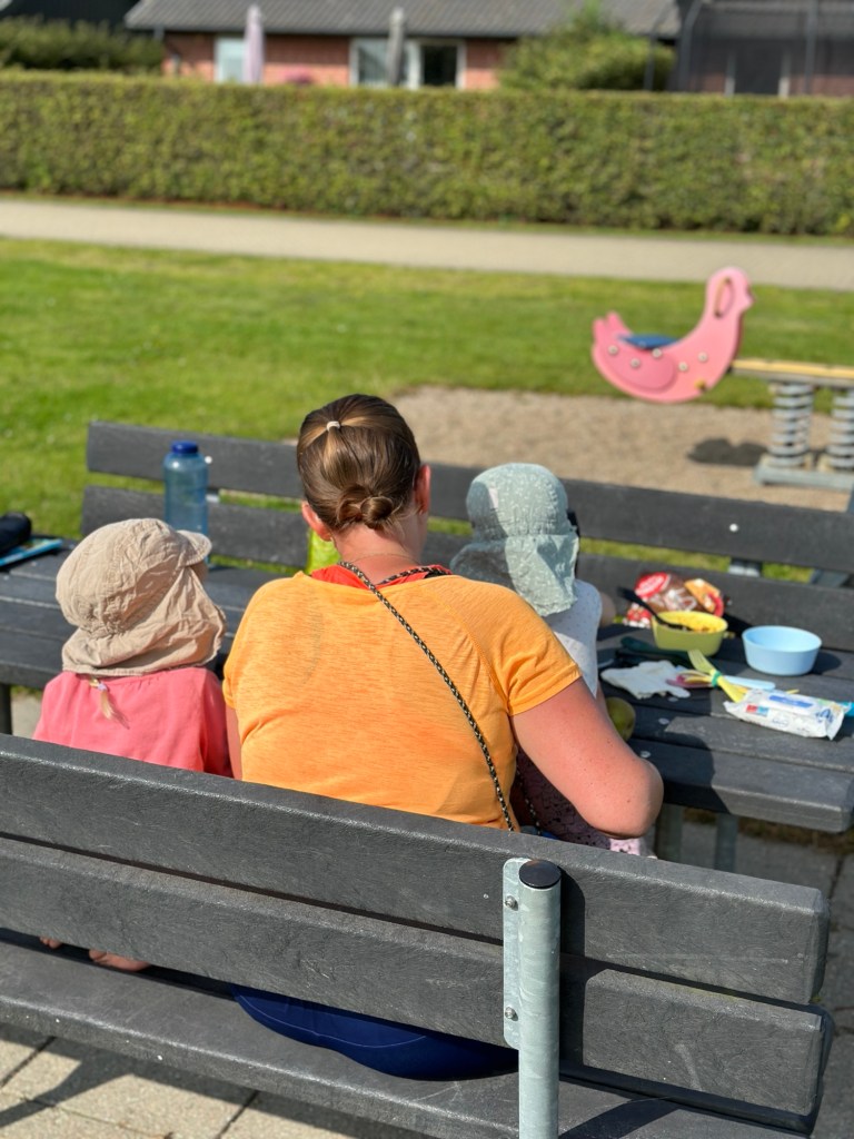 Wir machen Rast in Rødekro, einem sehr aufgeräumten Örtchen, dass am Reißbrett entstanden ist. Es scheint fast menschenleer, aber bewohnt zu sein. Der Spielplatz ist genauso aufgeräumt, wie der Rest. Ein schwarzes Klettergerüst steht auf Kies inmitten einer gut gepflegten, gemähten Wiese. Am Rand steht eine Picknickbank, auf der wir unser Mittagessen zubereiten. Gelegentlich fahren zwei Jungs vorbei, einer auf einem E-Scooter, der andere auf einem Moped. Immer wieder hin und her.