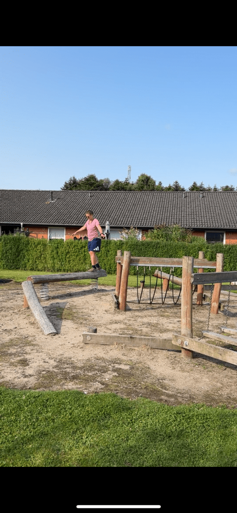 Wir halten in Bække, einem Örtchen, dass sich nicht von den anderen Reißbrett-Orten unterscheidet. Flache Häuser, Vorgärten, Hecken, alles akkurat, saubere Straßen, kaum jemand zu sehen. Wir halten auf dem örtlichen Spielplatz und essen erstmal Mittag, dass wir bei der Einfahrt in den Ort im Supermarkt besorgt haben: Pølsehorn (Würstchen im Schlafrock) und eine Art Pide mit Skinke (Schinken) und Peperoni (normale Salami). Zum Nachtisch haben wir noch Kanelsnegle (Zimtschnecke) und ein süßes Croissant. Eigentlich praktizieren wir keinen „Nachtisch“ zumindest, wenn es um die Kinder geht. Wir wollen, dass sie sich satt essen und nicht den Hauptgang für den Nachtisch abbrechen oder oder sich überfressen, nur weil sie ja auch genug vom Nahrhaften essen wollen. Wir haben keinen wirklich intuitiven Umgang mit Essen, eher impulsiv, aber wir versuchen unser bestes, den Kindern ihr intuitives Essverhalten zu bewahren. Allerdings ist dieser ganze Süßkram wahrscheinlich eher kontraproduktiv, was die Intuition betrifft.