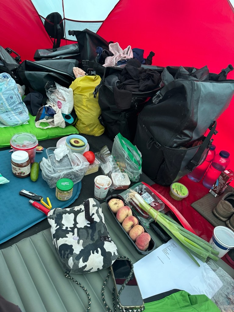 Bis wir wieder aufbauen wollen wir noch eine Pizza am Kiosk essen gehen. Anschließend gibt es noch ein Eis und dann geht’s an den Aufbau. Es ist immer noch sehr böig, aber schon weniger Wind geworden. wir könnten auch für heute einfach eine hätte mieten, aber ich möchte gerne sicherstellen, dass sich das Zelt noch gewöhnen lässt. Falls wir es nicht mehr aufbauen können, will ich das nicht erst in der Pampa bemerken. Alles ist ok. Ich habe die verbogenen Stangen etwas gerade biegen können. Zelt steht und wir räumen wieder alles ein.