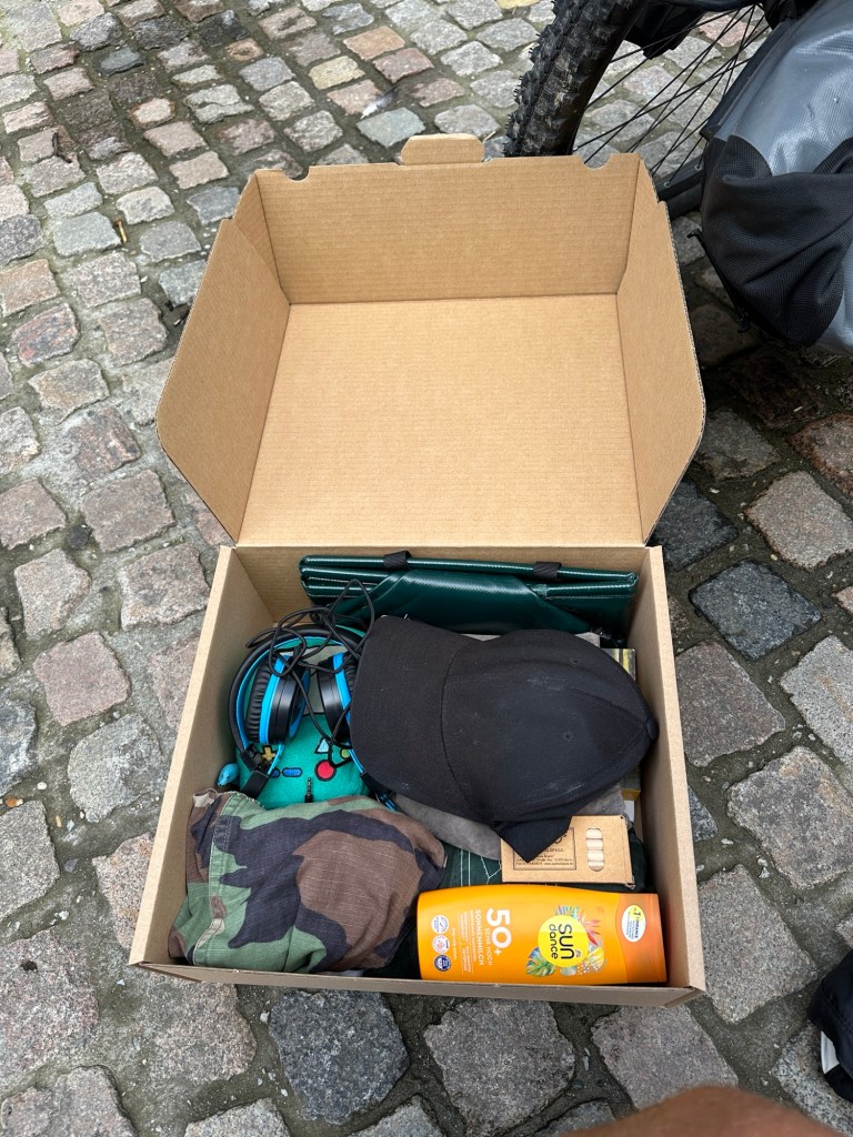 Wir erkundigen uns, wo wir ein Paket besorgen könnten und es auch verschicken können. Føtex lautet die Antwort. Ich habe den Namen schon ein paar Mal gelesen, aber dachte immer, dass das etwas mit Fotos zu tun hat. Sie verkaufen aber Lebensmittel (fødevarer) und Textilen, woraus sich der Name ergibt. Dort ist eine Filiale von Postnord integriert, wo wir unser knapp über 3kg schweres Paket nach Hause schicken. Etwa 5 € der Karton und 40 € der Versand. Ein teures Unterfangen. Aber gut, wir wollten die Sachen einfach nicht mehr länger mitfahren: