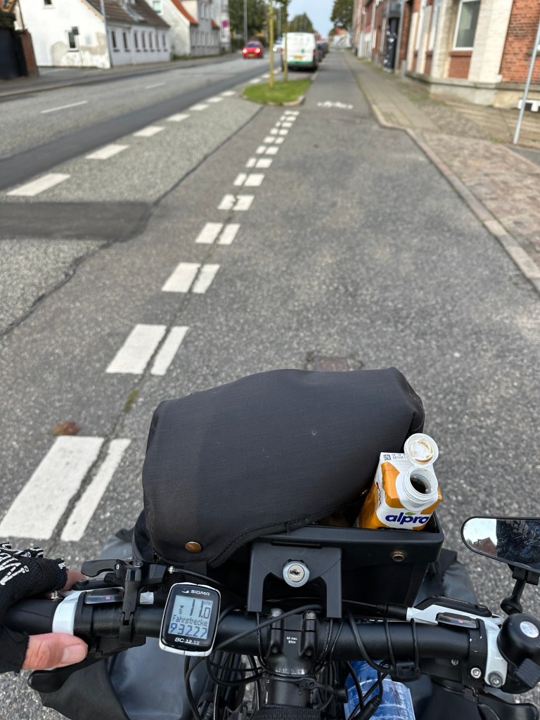 Wir versuchen den Tag etwas früher als sonst zu beginnen, damit wir genug Zeit in Aalborg haben. Das klappt nur leidlich, aber immerhin sind wir in kurz nach zwölf unterwegs. Wir hatten noch kurz mit Flo und Fieder gesprochen, die uns erzählt haben, dass sie fast zwei Tage bis nach Hause brauchen. Sie wollen mit dem Bus von Aalborg bis nach Berlin fahren und von Berlin mit dem Regionalzug bis nach Regensburg. wir sind gespannt, wie wir es angehen. Einen festen Plan haben wir immer noch nicht.