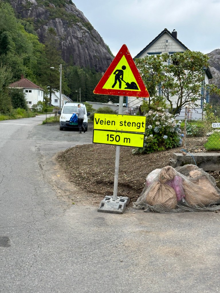 Heute wollen wir wieder weiterfahren, um mehr von Norwegen zu sehen. Dafür müssen wir leider auch unsere Unterkunft hinter uns lassen. Als die Große wach wird, geht sie direkt wieder ins Wohnzimmer und spielt weiter mit den Puppen. Die Kinder haben seit über 30 Tagen eine sehr begrenzte Auswahl an Spielsachen dabei. Wir haben einen Beutel mit Buddelsachen, die nicht nur im Sandkasten Verwendung finden, wir haben ein kleines Auto dabei, Bücher, jeder hat ein Kuscheltier dabei, eine kleine Dose, weil die Kleine gerne mit Dosen und Deckeln spielt und eine Toniebox mit einer Handvoll Tonies. Zwischendurch finden sich aber eigentlich immer genug andere Möglichkeiten, der Fantasie freien Lauf zu lassen und mehr Spielzeug würde oft eher das freie Spiel hemmen oder zu Streit führen. Das Spielzeugangebot unserer Unterkunft kommt bei en Kindern sehr gut an und sie möchten sich am liebsten mit nichts anderem mehr beschäftigen. Wir wollen, wie gesagt, heute abreisen und leider müssen wir auch die Reinigung der Unterkunft übernehmen. Wir schaffen es oft zu Hause kaum die Wohnung in Schuss zu halten und jetzt sucht uns gleich beim ersten Dach über dem Kopf die Hausarbeit heim. Wir haben das bei der Buchung übersehen, aber es gab auch keine andere Unterkunft mehr auf Airbnb.