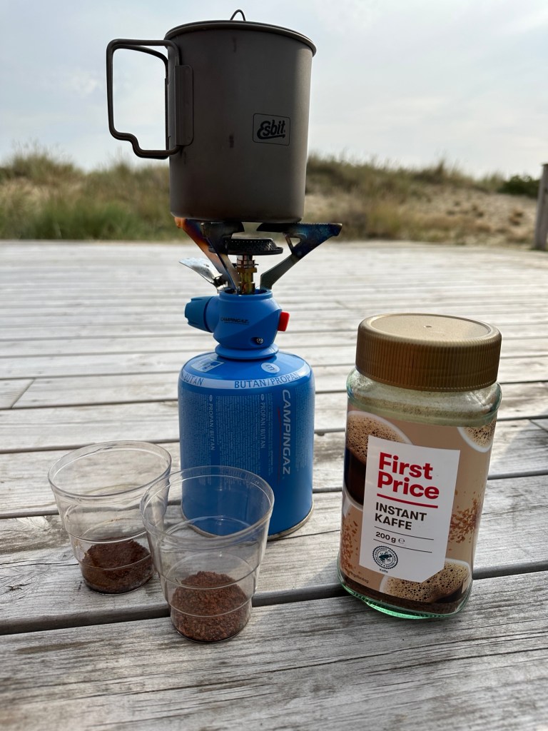 Wir haben zwar gestern Instant Kaffee geschenkt bekommen, aber wir wollen trotzdem sehen, ob es hier auf dem Campingplatz Kaffee gibt und wie der so ist. Oft genug haben wir morgens gar keine Möglichkeit an Kaffee zu kommen und das wollen wir hier auskosten. Wir bekommen Filterkaffee im Pappbecher, der OK schmeckt. Es ist ein kleiner Becher und irgendwie bin ich etwas ernüchtert. Wir machen uns später noch einen Instant Kaffee und obwohl ich nie ein Fan davon war, gibt mir dieses kleine selbstgemachte Gebräu ein kleines Hochgefühl. Ich weiß, ich bin ein Kaffee Junkie und Lu hat seit Jahren durch die Kinder sehr reduziert getrunken, aber heute gibt es auch bei ihr mal eine zweite Tasse.