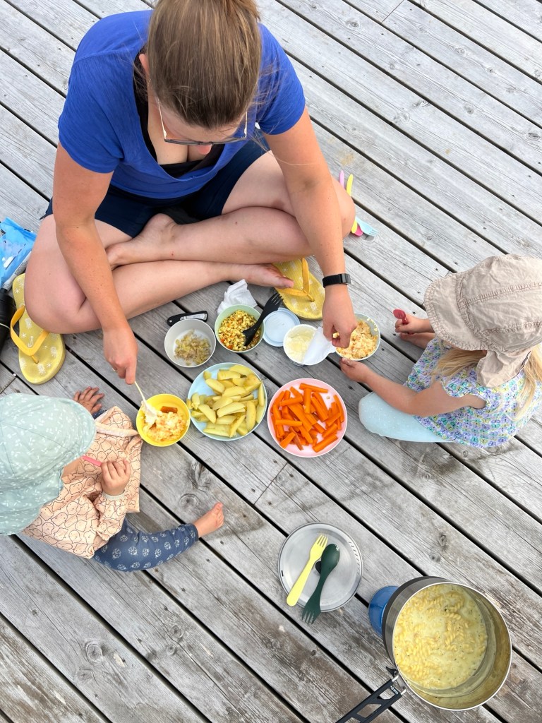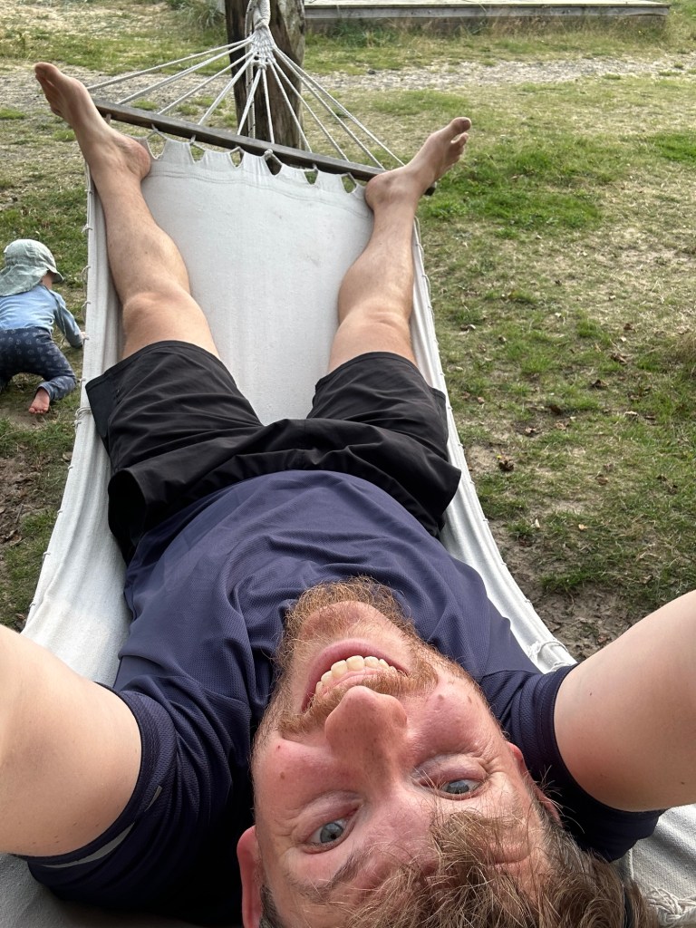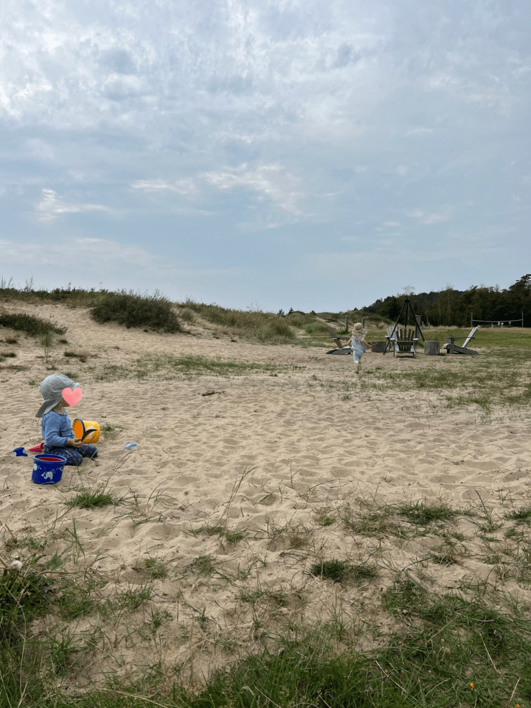 Die Kleine macht heute Mittagsschlaf im Zelt. Während sie schlummert, spielt die Große im Sand und wir beginnen bald das Essen vorzubereiten. Und für einen Moment gibt es richtigen Urlaub – auch für die Eltern. Ein Kind schläft, das andere spielt im Sand, wir hören das Meer hinter der Düne rauschen und wir können uns einfach entspannen.