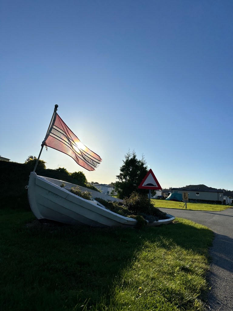 Es ist kalt und wir freuen uns, wieder in Bewegung zu kommen. Der Weg zum Campingplatz, den wir heute anpeilen, führt uns zurück durch den Ort und durch ein kleines Waldstück an die Küste. Wir checken auch hier wieder nicht offiziell ein und haben somit keine Möglichkeit, die sanitären Einrichtungen zu nutzen. Da die Preise hier in Norwegen aber unser Budget übersteigen, jeden Tag die Campingplatzmiete zu zahlen, nur um auf die Toilette gehen zu können, vermeiden wir das, wenn es möglich ist.
