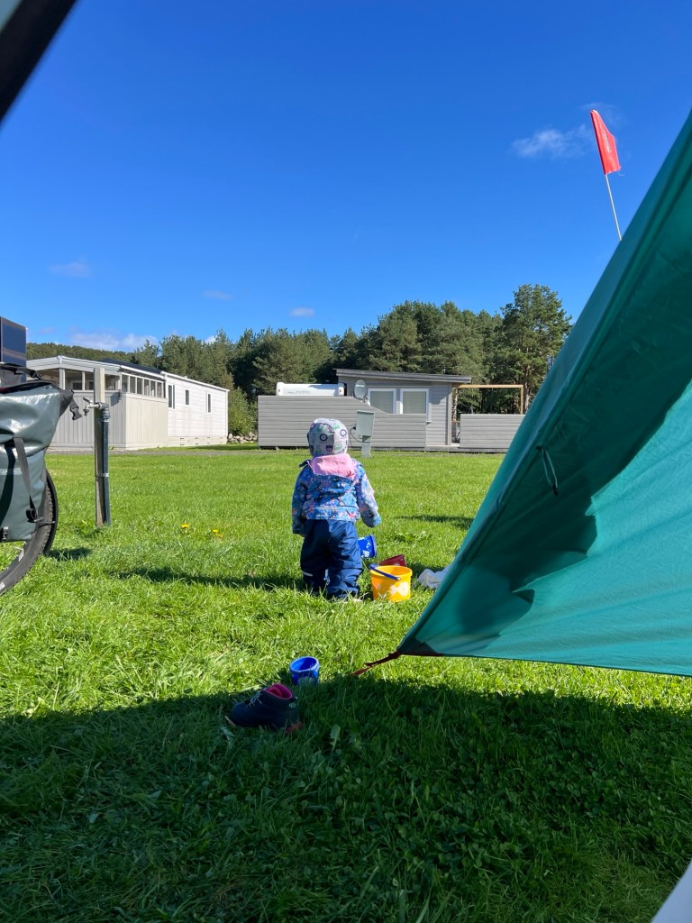 Wir finden heraus, wo die Zeltplätze sind und stellen fest, dass auf diesem Campingplatz noch einige Urlauber sind. Sogar ein Paar mit Zelt und Auto ist hier. Während wir unser Zelt aufbauen und uns einrichten, backen und kochen die Kinder Gerichte aus Wiese und anderen Pflanzenteilen. Anschließend machen wir die beiden Bettfertig und legen sie hin. Auf uns wartet mal wieder Schreibarbeit am Blog und unserem Insta-Account und ein paar Nachos mit Dip.