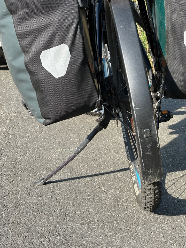 Auf dem Rückweg zu den anderen fällt mir auf, dass nicht nur mein Fahrradständer unter der Last gelitten hat, sondern auch der Ständer an Lus Fahrrad ächzt mittlerweile, obwohl er immer noch bedeutend besser ist, als meiner. Beim nächsten Fahrrad würde ich auch auf eine Easy Mount Schnittstelle achten, wenn es wieder ein Cube Bike werden sollte. Aber erstmal funktioniert noch alles und 40.000 km hat es wahrscheinlich schon drauf.