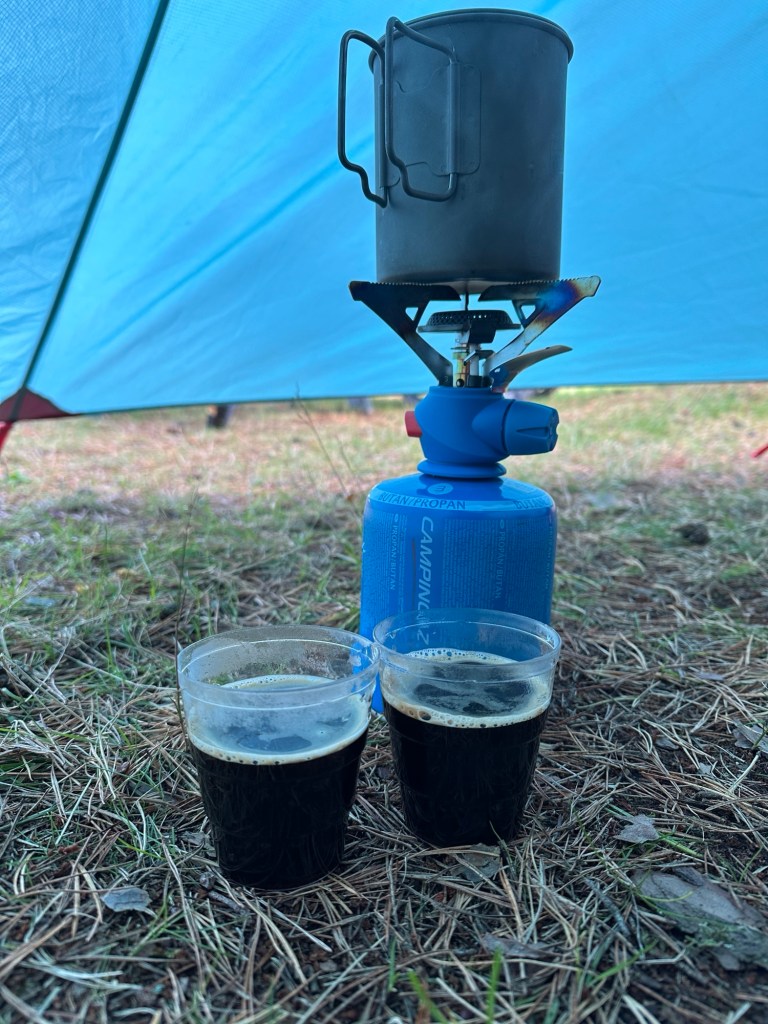 Als wir gegen 18:30 in Søgne auf einem Campingplatz ankommen, haben wir tatsächlich noch über 40 km heute hinter uns gebracht. An der Rezeption sitzt niemand mehr, aber als wir uns gerade orientieren, kommt eine Mutter mit ihren zwei Söhnen in einem Grand California an, der vom gleichen Verleih ist, von dem wir vor der Fahrradreise genau das gleiche Modell gemietet hatten. Wir kommen ins Gespräch. Sie ist mit ihren zwei Kindern alleine auf Reisen und hat sowohl schon einiges an Strecke hinter sich, als auch noch vor sich. Nach einigen Minuten – unsere Kinder sitzen noch im Anhänger und ihre sind unruhig im Auto – verabschieden wir uns vorerst von einander. Wir werden uns ja bestimmt nochmal sehen. Jetzt suchen wir uns erstmal alle einen Platz. Wir cruisen über den gesamten Campingplatz und finden keinen wirklichen Zeltplatz. Am Wasser könnte etwas für Zelte gedacht sein, aber da gibt es keinen Windschutz und deshalb wollen wir unser Zelt nicht dort aufbauen. Ansonsten haben wir noch keine andere Wiese gefunden. Wir fahren an ein paar Leuten vorbei, die gerade am Wegesrand im Gespräch sind. Sie geben uns den Tipp uns einfach auf eine Wiese bei ein paar Campern niederzulassen. Und wen treffen wir dort wieder? Die Camper-Mutter mit ihren zwei Kindern. Wir kommen gleichzeitig dort an. Nach kurzer Abstimmung platzieren wir uns so, dass wir Nachbarn sind. Wir verbringen die meiste Zeit vom Rest des Tages zusammen. Die Kinder malen gemeinsam und es gibt Snacks für die kleinen. Dann bekommen wir noch eine Suppe geschenkt, die sich die Große aussuchen darf. Denn die Mutter mit ihren zwei Kindern, hat in ihrer Camper-Vorratskammer mehr eingepackt, als sie verbrauchen wird, weshalb mit uns teilen möchte. Die Große sucht sich eine Erbsensuppe aus und wir bekommen noch ein Focaccia geschenkt. Letztlich wird die Suppe ein Abendessen für Lu und mich, weil keines der Kinder davon essen möchte, als sie fertig ist. Stattdessen gibt es Würstchen, Mozzarella und Obst für die beiden. Auch OK. Wir verabschieden uns bald voneinander und jeder zieht sich in die eigenen vier Wände zurück.