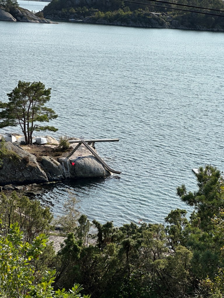 Wir fahren weiter und insgesamt ist es wieder eine schöne Fahrt. Ein paar kleine Örtchen, das Wetter ist gut und wir kommen gut voran. Bei sonnigem Wetter laden die Fjorde zum Verweilen ein, aber für uns geht es heiter weiter. Das Reisen auf dem Rad bietet immerhin den Vorteil zum Autofahren, dass wir permanent in der Natur sind. Wir hören jedes Plätschern am Straßenrand, das Zwitschern der Vögel, das Rauschen der Blätter, wir riechen die Wälder, die Küste, die Restaurants und Imbiss Buden in den Ortschaften, spüren die Wärme der Sonne, die Kühle des Windes und der Schatten und wir haben viel Zeit Eindrücke zu sammeln.