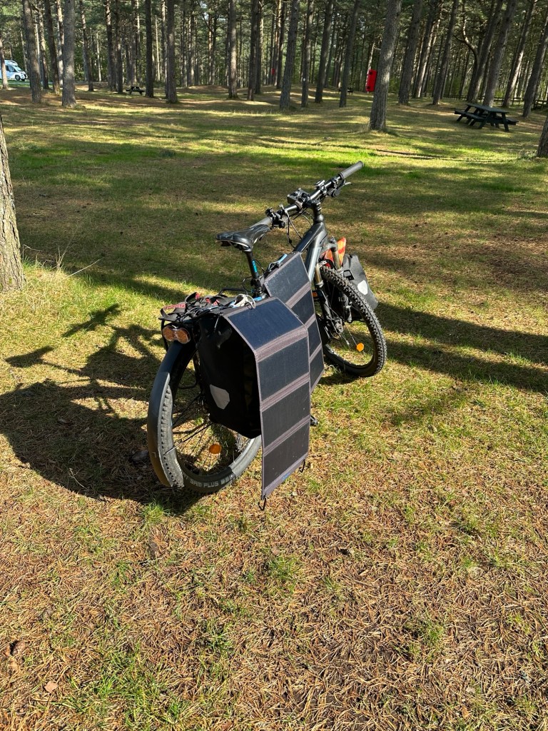 Wir schließen im Toiletten- und Duschhaus über Nacht eine unserer Powerbanks an, einfach, weil wir es können. So müssen wir weniger Anstalten mit dem Solarpanel machen. Außerdem laden wir unsere Fitbit Uhren, weil die sich nicht über die Powerbank oder das Solarpanel laden lassen.
